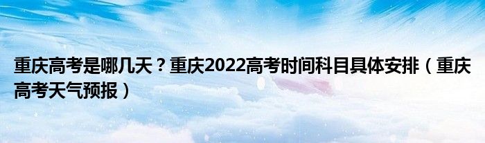 大家好,小安來為大家解答以上的問題重慶高考是哪幾天?重慶2022高考時間科目具體安排,重慶高考天氣預(yù)報這個很多人還不知道,現(xiàn)在讓我們一起來看看吧!