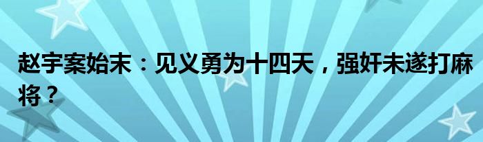 趙宇案始末:見義勇為十四天,強奸未遂打麻將?