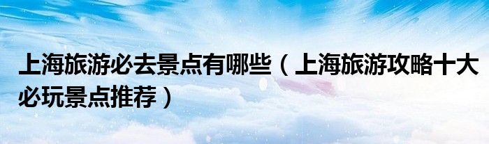 大家好,綜合小編來為大家講解下。上海旅游必去景點有哪些,上海旅游攻略十大必玩景點推薦很多人還不知道,現在讓我們一起來看看吧!