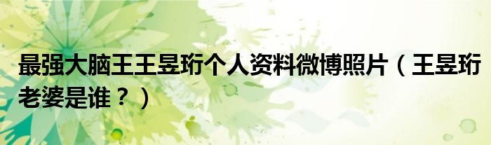 大家好,小安來為大家解答以上的問題最強(qiáng)大腦王王昱珩個(gè)人資料微博照片,王昱珩老婆是誰?這個(gè)很多人還不知道,現(xiàn)在讓我們一起來看看吧!