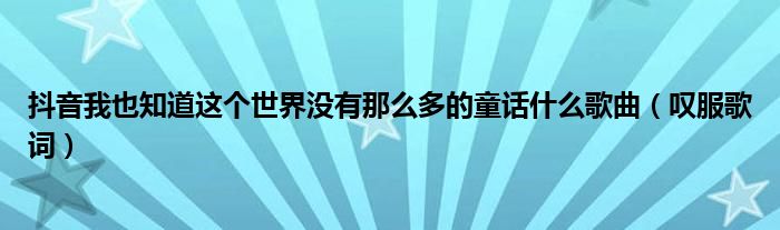 大家好,小安來為大家解答以上的問題抖音我也知道這個(gè)世界沒有那么多的童話什么歌曲,嘆服歌詞這個(gè)很多人還不知道,現(xiàn)在讓我們一起來看看吧!