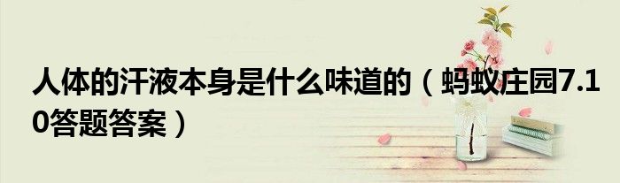 大家好,綜合小編來(lái)為大家講解下。人體的汗液本身是什么味道的,螞蟻莊園7.10答題答案很多人還不知道,現(xiàn)在讓我們一起來(lái)看看吧!