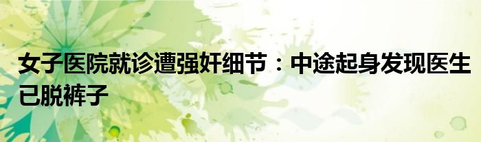 大家好,小安來為大家解答以上的問題女子醫院就診遭強奸細節:中途起身發現醫生已脫褲子這個很多人還不知道,現在讓我們一起來看看吧!