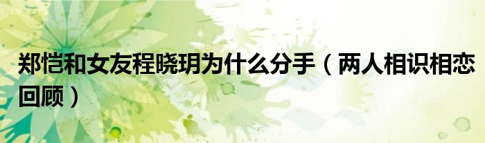 大家好,小安來(lái)為大家解答以上的問(wèn)題鄭愷和女友程曉玥為什么分手,兩人相識(shí)相戀回顧這個(gè)很多人還不知道,現(xiàn)在讓我們一起來(lái)看看吧!