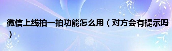 大家好,綜合小編來為大家講解下。微信上線拍一拍功能怎么用,對方會有提示嗎很多人還不知道,現在讓我們一起來看看吧!