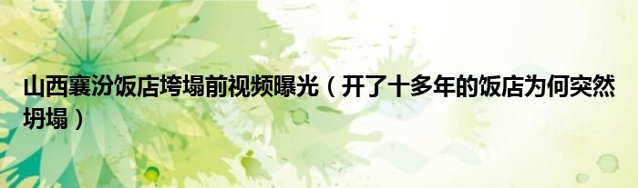 大家好,綜合小編來為大家講解下。山西襄汾飯店垮塌前視頻曝光,開了十多年的飯店為何突然坍塌很多人還不知道,現在讓我們一起來看看吧!