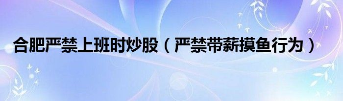 大家好,綜合小編來為大家講解下。合肥嚴禁上班時炒股,嚴禁帶薪摸魚行為很多人還不知道,現在讓我們一起來看看吧!