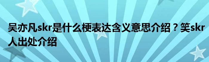 大家好,小安來為大家解答以上的問題吳亦凡skr是什么梗表達含義意思介紹?笑skr人出處介紹這個很多人還不知道,現在讓我們一起來看看吧!