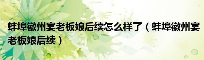大家好,綜合小編來為大家講解下。蚌埠徽州宴老板娘后續(xù)怎么樣了,蚌埠徽州宴老板娘后續(xù)很多人還不知道,現(xiàn)在讓我們一起來看看吧!