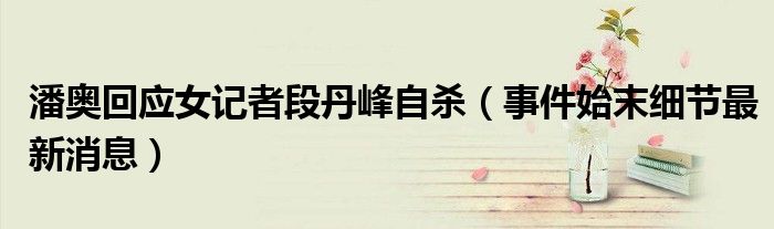 大家好,小安來為大家解答以上的問題潘奧回應(yīng)女記者段丹峰自殺,事件始末細(xì)節(jié)最新消息這個很多人還不知道,現(xiàn)在讓我們一起來看看吧!