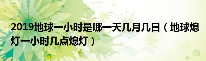 大家好,小安來為大家解答以上的問題2019地球一小時是哪一天幾月幾日,地球熄燈一小時幾點熄燈這個很多人還不知道,現(xiàn)在讓我們一起來看看吧!