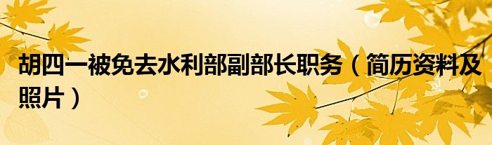大家好,小安來為大家解答以上的問題胡四一被免去水利部副部長職務(wù),簡歷資料及照片這個很多人還不知道,現(xiàn)在讓我們一起來看看吧!