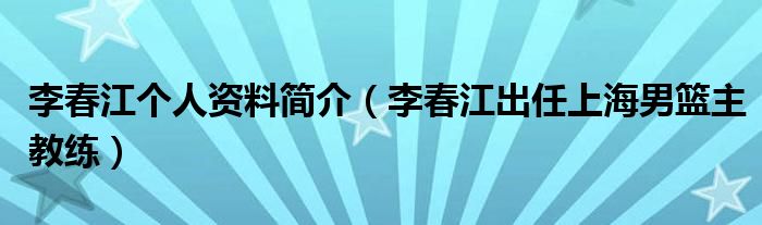 大家好,小安來為大家解答以上的問題李春江個人資料簡介,李春江出任上海男籃主教練這個很多人還不知道,現(xiàn)在讓我們一起來看看吧!