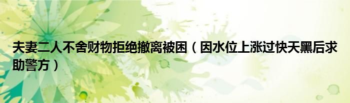 大家好,綜合小編來為大家講解下。夫妻二人不舍財物拒絕撤離被困,因水位上漲過快天黑后求助警方很多人還不知道,現在讓我們一起來看看吧!
