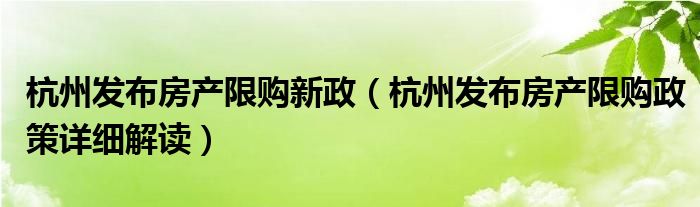 大家好,綜合小編來為大家講解下。杭州發布房產限購新政,杭州發布房產限購政策詳細解讀很多人還不知道,現在讓我們一起來看看吧!