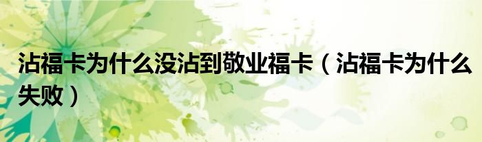大家好,綜合小編來為大家講解下。沾福卡為什么沒沾到敬業福卡,沾福卡為什么失敗很多人還不知道,現在讓我們一起來看看吧!