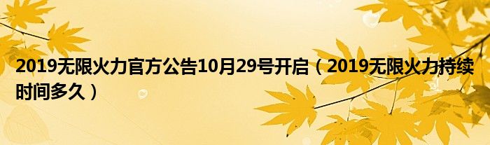 大家好,綜合小編來為大家講解下。2019無限火力官方公告10月29號開啟,2019無限火力持續時間多久很多人還不知道,現在讓我們一起來看看吧!