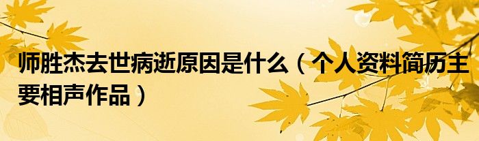 大家好,小安來為大家解答以上的問題師勝杰去世病逝原因是什么,個人資料簡歷主要相聲作品這個很多人還不知道,現在讓我們一起來看看吧!