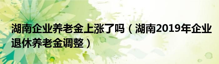 大家好,綜合小編來(lái)為大家講解下。湖南企業(yè)養(yǎng)老金上漲了嗎,湖南2019年企業(yè)退休養(yǎng)老金調(diào)整很多人還不知道,現(xiàn)在讓我們一起來(lái)看看吧!