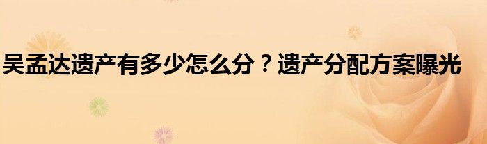 大家好,小安來為大家解答以上的問題吳孟達(dá)遺產(chǎn)有多少怎么分?遺產(chǎn)分配方案曝光這個很多人還不知道,現(xiàn)在讓我們一起來看看吧!