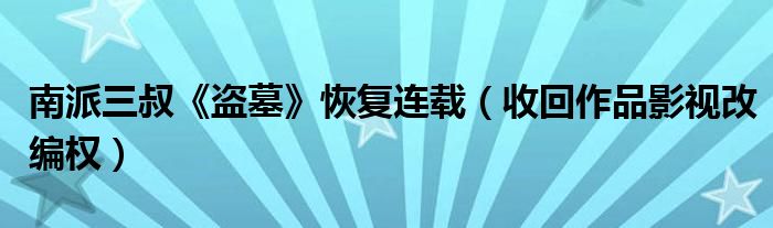 大家好,綜合小編來為大家講解下。南派三叔《盜墓》恢復連載,收回作品影視改編權很多人還不知道,現在讓我們一起來看看吧!