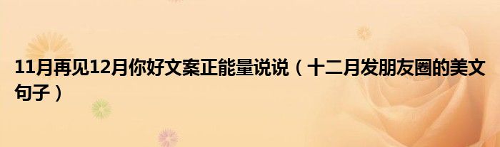 大家好,小安來為大家解答以上的問題11月再見12月你好文案正能量說說,十二月發朋友圈的美文句子這個很多人還不知道,現在讓我們一起來看看吧!