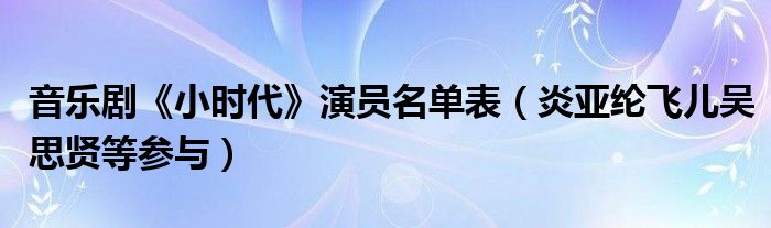 大家好,小安來為大家解答以上的問題音樂劇《小時代》演員名單表,炎亞綸飛兒吳思賢等參與這個很多人還不知道,現在讓我們一起來看看吧!