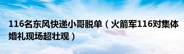 大家好,綜合小編來為大家講解下。116名東風快遞小哥脫單,火箭軍116對集體婚禮現場超壯觀很多人還不知道,現在讓我們一起來看看吧!