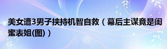 大家好,小安來為大家解答以上的問題美女遭3男子挾持機智自救,幕后主謀竟是閨蜜表姐(圖)這個很多人還不知道,現在讓我們一起來看看吧!