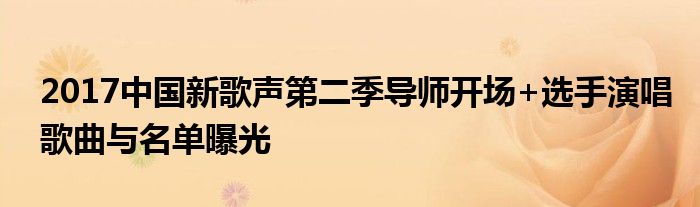 大家好,小安來(lái)為大家解答以上的問題2017中國(guó)新歌聲第二季導(dǎo)師開場(chǎng)+選手演唱歌曲與名單曝光這個(gè)很多人還不知道,現(xiàn)在讓我們一起來(lái)看看吧!