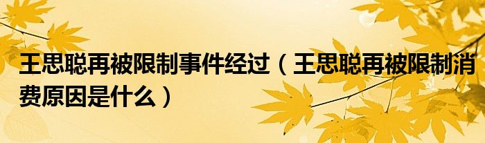 大家好,小安來為大家解答以上的問題王思聰再被限制事件經過,王思聰再被限制消費原因是什么這個很多人還不知道,現在讓我們一起來看看吧!