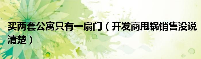 大家好,綜合小編來為大家講解下。買兩套公寓只有一扇門,開發商甩鍋銷售沒說清楚很多人還不知道,現在讓我們一起來看看吧!