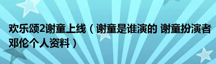 大家好,小安來為大家解答以上的問題歡樂頌2謝童上線,謝童是誰演的 謝童扮演者鄧倫個人資料這個很多人還不知道,現在讓我們一起來看看吧!