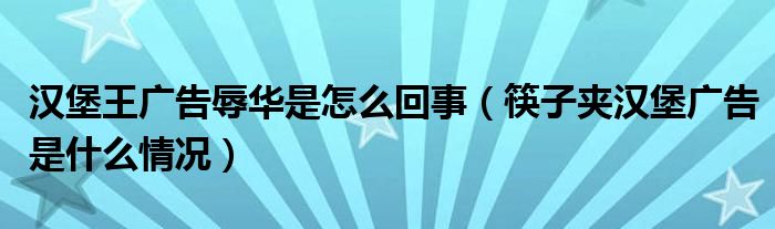 大家好,綜合小編來(lái)為大家講解下。漢堡王廣告辱華是怎么回事,筷子夾漢堡廣告是什么情況很多人還不知道,現(xiàn)在讓我們一起來(lái)看看吧!