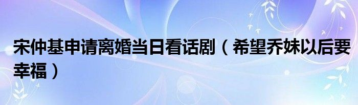 大家好,綜合小編來為大家講解下。宋仲基申請離婚當日看話劇,希望喬妹以后要幸福很多人還不知道,現在讓我們一起來看看吧!