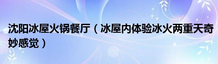 大家好,小安來為大家解答以上的問題沈陽冰屋火鍋餐廳,冰屋內體驗冰火兩重天奇妙感覺這個很多人還不知道,現在讓我們一起來看看吧!