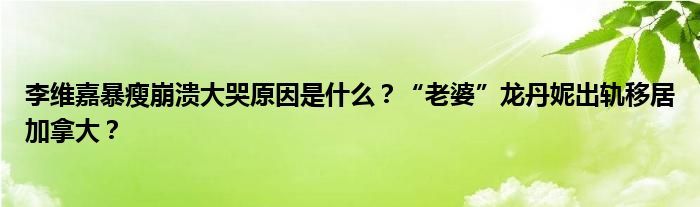 大家好,小安來為大家解答以上的問題李維嘉暴瘦崩潰大哭原因是什么?“老婆”龍丹妮出軌移居加拿大?這個很多人還不知道,現(xiàn)在讓我們一起來看看吧!