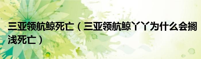 大家好,綜合小編來(lái)為大家講解下。三亞領(lǐng)航鯨死亡,三亞領(lǐng)航鯨丫丫為什么會(huì)擱淺死亡很多人還不知道,現(xiàn)在讓我們一起來(lái)看看吧!