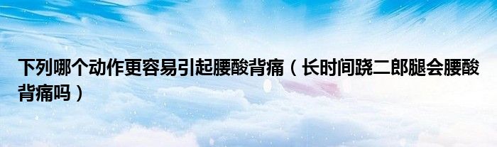 大家好,綜合小編來為大家講解下。下列哪個動作更容易引起腰酸背痛,長時間蹺二郎腿會腰酸背痛嗎很多人還不知道,現在讓我們一起來看看吧!