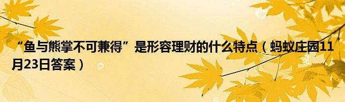 大家好,綜合小編來為大家講解下。“魚與熊掌不可兼得”是形容理財的什么特點,螞蟻莊園11月23日答案很多人還不知道,現在讓我們一起來看看吧!