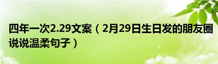 大家好,小安來為大家解答以上的問題四年一次2.29文案,2月29日生日發的朋友圈說說溫柔句子這個很多人還不知道,現在讓我們一起來看看吧!