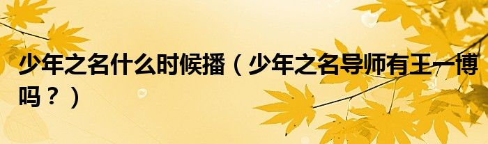 大家好,小安來為大家解答以上的問題少年之名什么時候播,少年之名導師有王一博嗎?這個很多人還不知道,現在讓我們一起來看看吧!