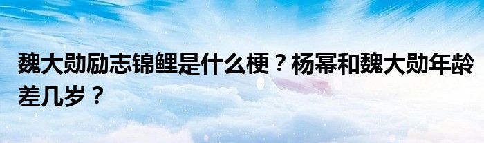 大家好,小安來為大家解答以上的問題魏大勛勵志錦鯉是什么梗?楊冪和魏大勛年齡差幾歲?這個很多人還不知道,現在讓我們一起來看看吧!