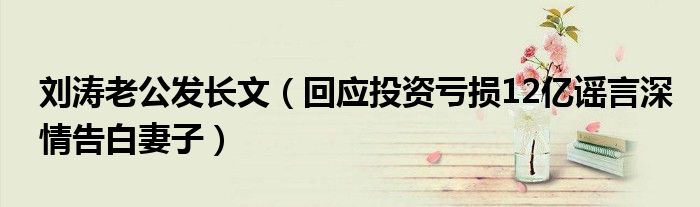 大家好,綜合小編來為大家講解下。劉濤老公發長文,回應投資虧損12億謠言深情告白妻子很多人還不知道,現在讓我們一起來看看吧!
