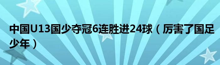 大家好,綜合小編來為大家講解下。中國U13國少奪冠6連勝進24球,厲害了國足少年很多人還不知道,現在讓我們一起來看看吧!