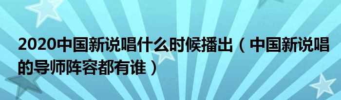 大家好,小安來為大家解答以上的問題2020中國新說唱什么時候播出,中國新說唱的導(dǎo)師陣容都有誰這個很多人還不知道,現(xiàn)在讓我們一起來看看吧!