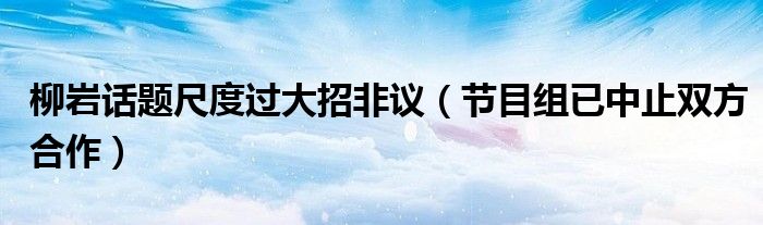 大家好,小安來為大家解答以上的問題柳巖話題尺度過大招非議,節目組已中止雙方合作這個很多人還不知道,現在讓我們一起來看看吧!
