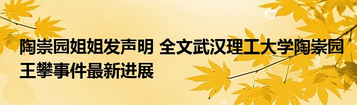聲明中,陶崇園姐姐表示:“我弟陶崇園因個人原因去世后,全家都陷入極度的悲痛之中,未全面了解事件的具體情況,有一些不理性的言行,網上炒作嚴重超出我們的預期。對武漢理工大學的聲譽和王攀老師帶來了不良影響,特此致歉。”并對學校表示了感謝。