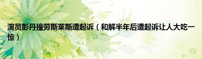 大家好,綜合小編來為大家講解下。演員彭丹撞勞斯萊斯遭起訴,和解半年后遭起訴讓人大吃一驚很多人還不知道,現在讓我們一起來看看吧!