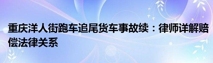 大家好,小安來為大家解答以上的問題重慶洋人街跑車追尾貨車事故續:律師詳解賠償法律關系這個很多人還不知道,現在讓我們一起來看看吧!